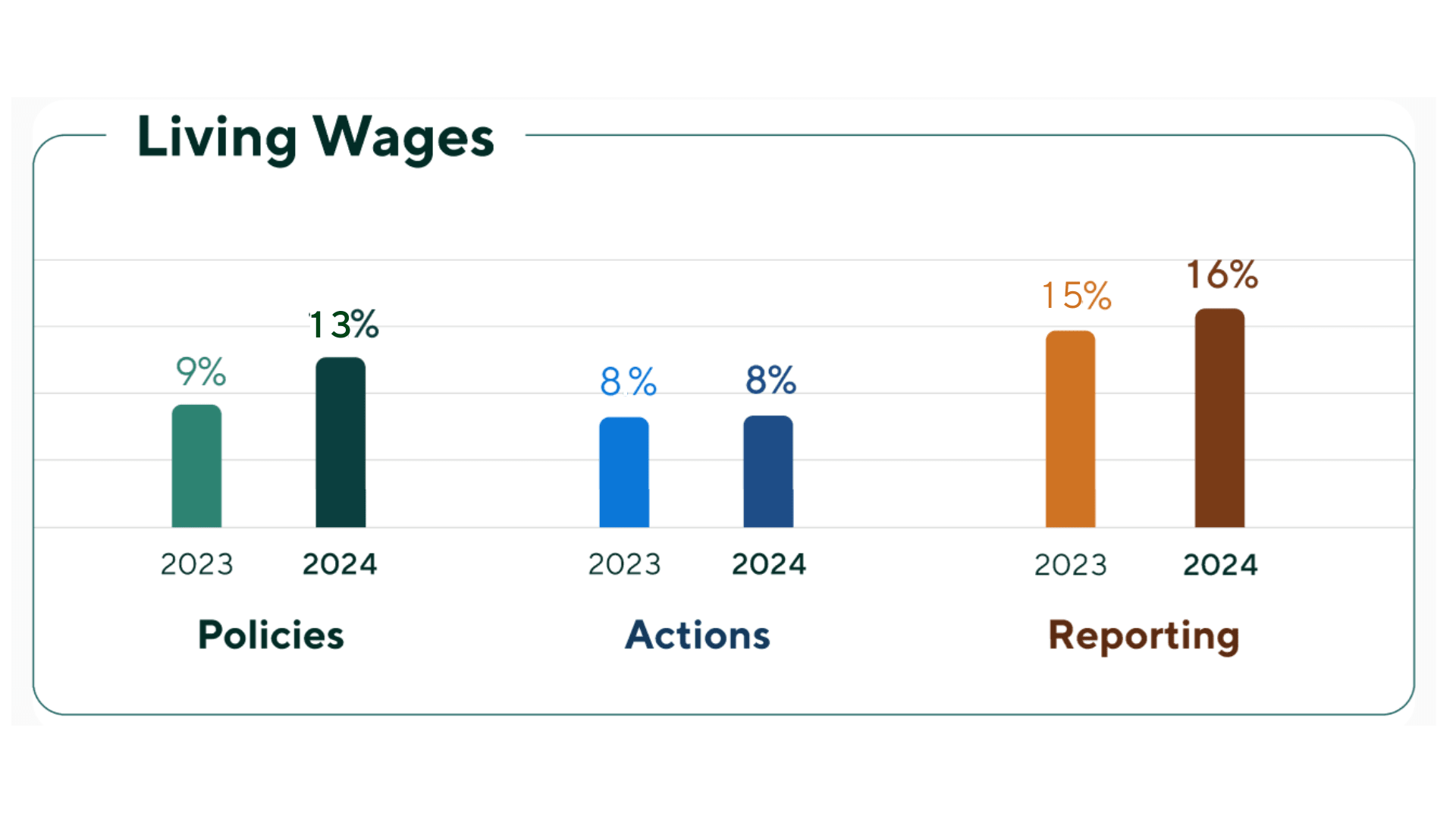 However, the percentage of companies implementing measures to close the living wage gap stagnated between 2023 and 2024 at around 8%.