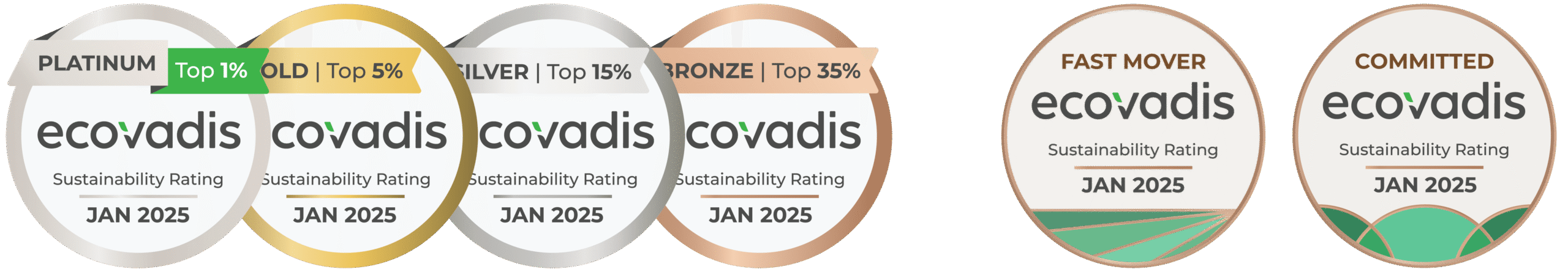 EcoVadis medals are awarded to the top 35% of companies assessed by EcoVadis: