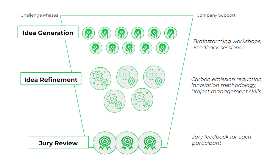 The innovation challenge was managed by our Innovation team in close collaboration with the Impact team, which is responsible for carbon management. The challenge was divided into three steps and ran for three months.
