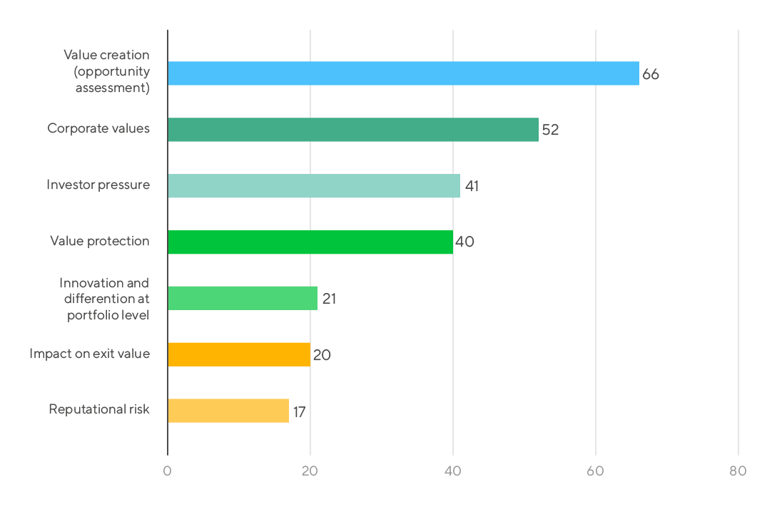 Percent of respondents who ranked each answer as one of their top three drivers of ESG activity: