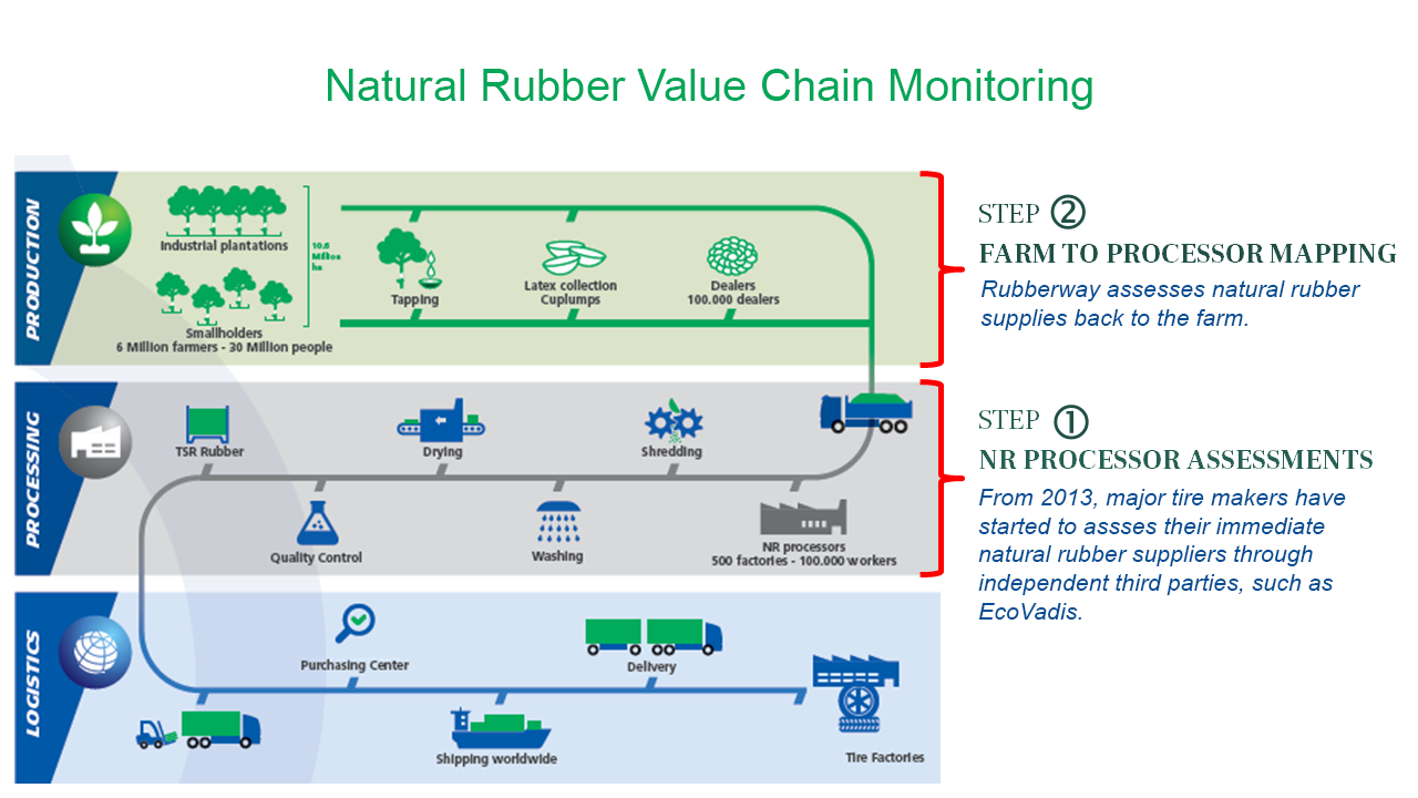 For Continental AG’s Micheal Radke, Head of Sustainability Supply Chain Management, using both EcoVadis Ratings and Rubberway has also proved a great approach to tackling sustainability risks in the supply chain. “Responsible sourcing is one of the key focus areas in Continental’s sustainability strategy. With the help of EcoVadis we have successfully implemented a supplier assessment program for Tier-1 suppliers in all of our raw material categories. And for natural rubber, we are very pleased to have Rubberway. It’s a very powerful, innovative and pragmatic tool that allows us to assess risks along all tiers of the upstream supply chain including smallholders. By partnering with Michelin — and hopefully also other tire manufacturers in the future — we hope to develop Rubberway into an industry standard along with the Global Platform for Sustainable Natural Rubber.”