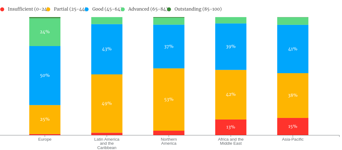 Regional share of companies at each performance level on the Environment theme (2022)