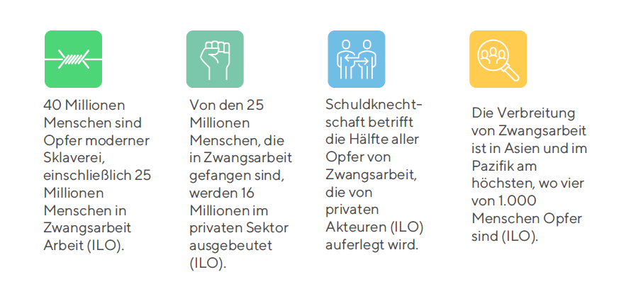 Nach Angaben der Internationalen Arbeitsorganisation (ILO) befinden sich 16 Millionen der geschätzten insgesamt 40 Millionen Opfer der modernen Sklaverei in Zwangsarbeitssituationen im Privatsektor. Medien, Nichtregierungs-organisationen (NGOs) und Aufsichtsbehörden haben viele multinationale Unternehmen wegen Menschenrechtsverletzungen in ihren Lieferketten ins Blickfeld gerückt. Die Reputation als Unternehmen, die Umsätze und letztlich auch die “licence to operate” ist damit erhöhten Risiken durch Menschenrechtsverletzungen in der Lieferkette ausgesetzt..