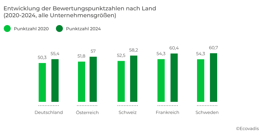 Nachhaltigkeitsleistungen deutscher Unternehmen im internationalen Vergleich: Einblicke aus dem EcoVadis Index 2025