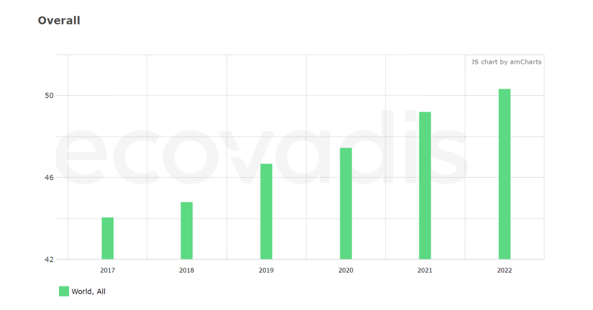 Wir haben deshalb mehrere Änderungen vorgenommen. Zunächst fügten wir Benchmarks hinzu, die Vergleiche mit anderen Unternehmen anhand eines Rankings nach Branche, Land oder Unternehmensgröße ermöglichten. Dies war zwar ein guter Anfang, aber die Benchmarks waren nur für Mitglieder des Netzwerks auf der Plattform verfügbar und für einige Stakeholder nicht leicht zu verstehen. Dies führte 2011 zur Einführung von Medaillen, die Unternehmen dazu motivieren, ihre Leistung zu verbessern, und es ihnen ermöglichen, ihre Erfolge öffentlich zu feiern und mit anderen zu teilen. Mit den EcoVadis Medaillen werden Unternehmen ausgezeichnet, die unser Bewertungsverfahren durchlaufen und ein relativ leistungsfähiges Managementsystem nachgewiesen haben, das die in unserer Methodik dargelegten Nachhaltigkeitskriterien erfüllt.