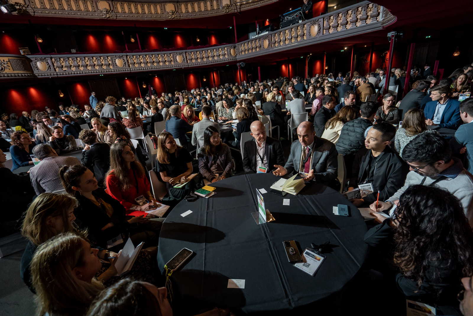 L’innovation de cette année : transformer durant la nuit la salle de spectacle du Trianon en un parterre de plus de 30 tables rondes de 10/15 personnes, façon “Town meeting”, où, durant 2 fois 45 minutes, les participants pouvaient confronter leurs expériences et plus largement engager la conversation.