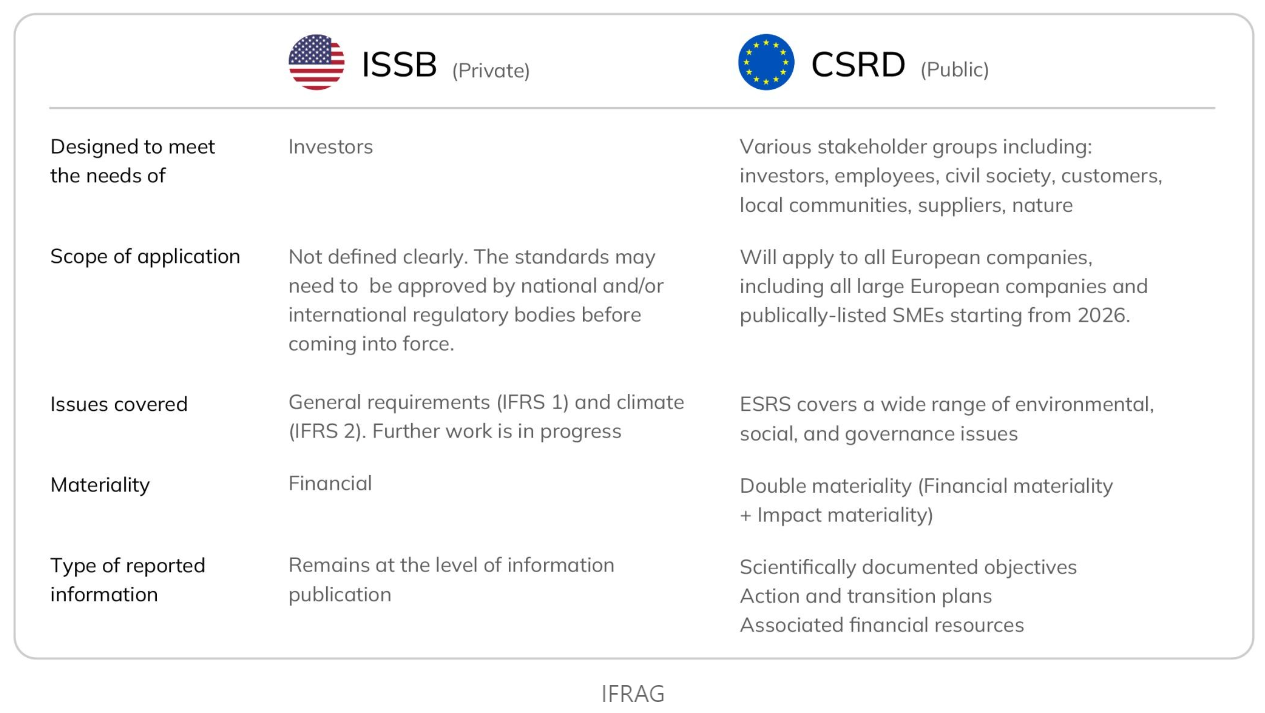 Etape 3 : Le débat s’emballe. Jean-Marc Jancovici entre dans la danse en expliquant dans un post que beaucoup d’indicateurs environnementaux liés à l’impact de l’activité de l’entreprise sur l’environnement sont en réalité « autant d'informations permettant de mieux apprécier le risque que l'activité ne puisse se poursuivre dans les mêmes conditions : ça doit pouvoir intéresser l'actionnaire ! ». Plusieurs autres experts prennent position comme Paul Allard d’Impak Analytics qui explique : « Seulement 4 % du chiffre d’affaires total du STOXX 600 est aligné sur les #SDGs à mi-parcours. Nous avons également constaté que les entreprises, sans une approche de double matérialité, n’ont pas réussi à identifier certaines de leurs #impacts les plus importantes, et les conséquences financières vont être majeures. Nous avons non seulement besoin d’ambition, mais aussi d’incitations beaucoup plus fortes à atteindre grâce à des normes rigoureuses, comme le souligne le #CSRD. La complexité ne doit pas être une excuse pour l’inaction, mais plutôt une incitation à une approche ambitieuse mais progressiste ». Dans un autre post, la consultante RSE Pauline Roulleau tente elle de clarifier le débat en expliquant les différences entre la CDSRD européenne et l’ISSB/IFRS, américaine en prenant l’exemple du climat : dans le cas de l’IISB, l’entreprise devrait fournir : « des informations utiles aux investisseurs sur les risques et opportunités liés au climat et susceptibles d’impacter sa performance financière, en fixant ses propres objectifs climat ». Dans le cadre CSRD, elle devra en plus « rendre compte de son action sur le changement climatique au regard des objectifs de l’Accord de Paris (1,5°C) et de la réglementation européenne (-55% de GES à 2030 et neutralité à 2050) et donc publier son plan de transition pour l’atténuation du changement climatique aligné avec l'objectif de l'Accord de Paris de 1,5°C ». La bulle de discussion soulevée finit même par susciter un décryptage dans Les Echos le 23 octobre ! « J'ai voulu expliquer que si pour faire-valoir un projet qu'on a appelé trop vite double matérialité, on décrie et ne considère pas la matérialité économique, alors on se trompe », y assure Emmanuel Faber. Pas sûr que l'argument ait réussi à convaincre.