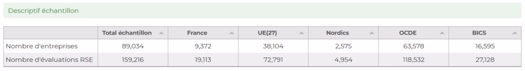 L’évaluation présente une double utilité. Elle permet aux entreprises de s’évaluer par rapport aux entreprises de leur secteur d’activité mais elle permet aussi de situer la performance RSE de l’entreprise en valeur absolue.