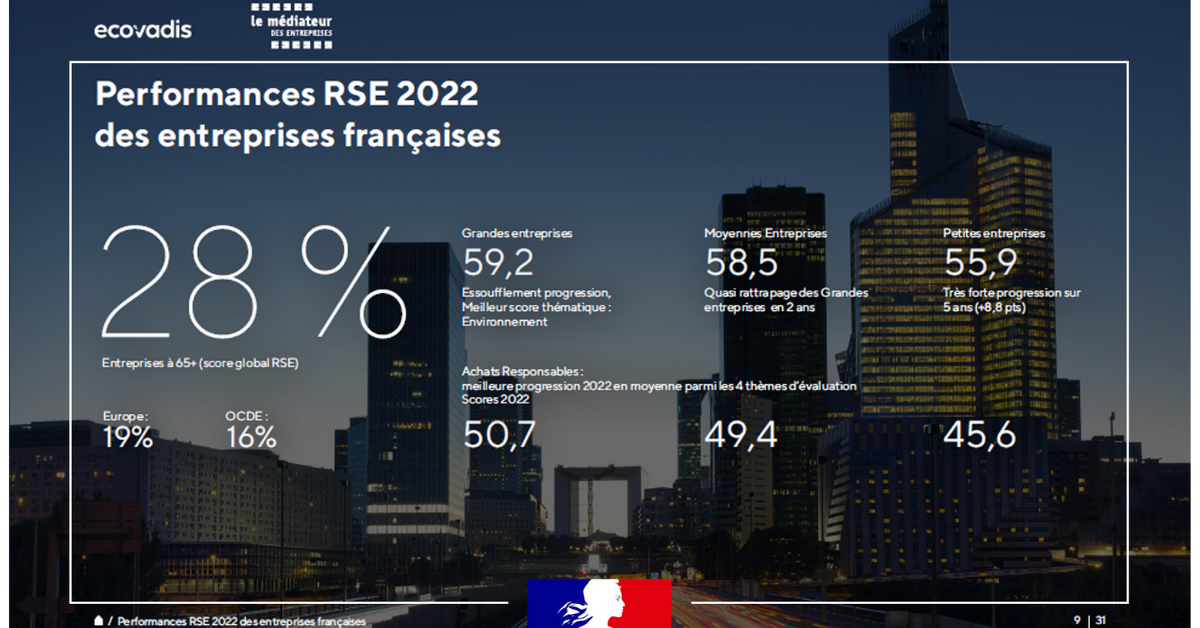 Les entreprises françaises de 100 à 1000 salariés évaluées par EcoVadis ont pratiquement atteint en 2022 les niveaux de scores des Grandes entreprises, de 1000 salariés et +. Découvrez la cinquième édition de l’étude sur les performances RSE réalisée en collaboration avec Le médiateur des entreprises.