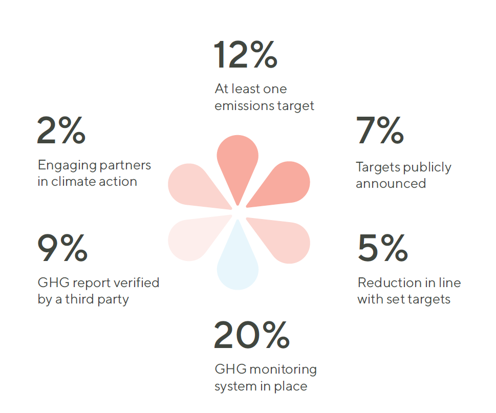 Per salire nella scala della maturità, le aziende devono dimostrare di aver compiuto progressi in un'ampia gamma di best practice in materia di carbonio, dal coinvolgimento dei partner nell'azione per il clima alla definizione di obiettivi in tutti e tre gli ambiti di emissione. Le aziende pragmatiche stanno consolidando il loro impegno per la decarbonizzazione e stanno lavorando per superare le aspettative sempre crescenti che gli acquirenti ripongono nelle emissioni di carbonio. Le aziende di alcune aree geografiche sono già considerate più competitive grazie alle loro performance relative a una serie di indicatori chiave sulle emissioni di carbonio. Abbiamo selezionato sei indicatori – tra le decine di quelli utilizzati e monitorati nella nostra metodologia di valutazione delle emissioni di carbonio – da analizzare a livello regionale.