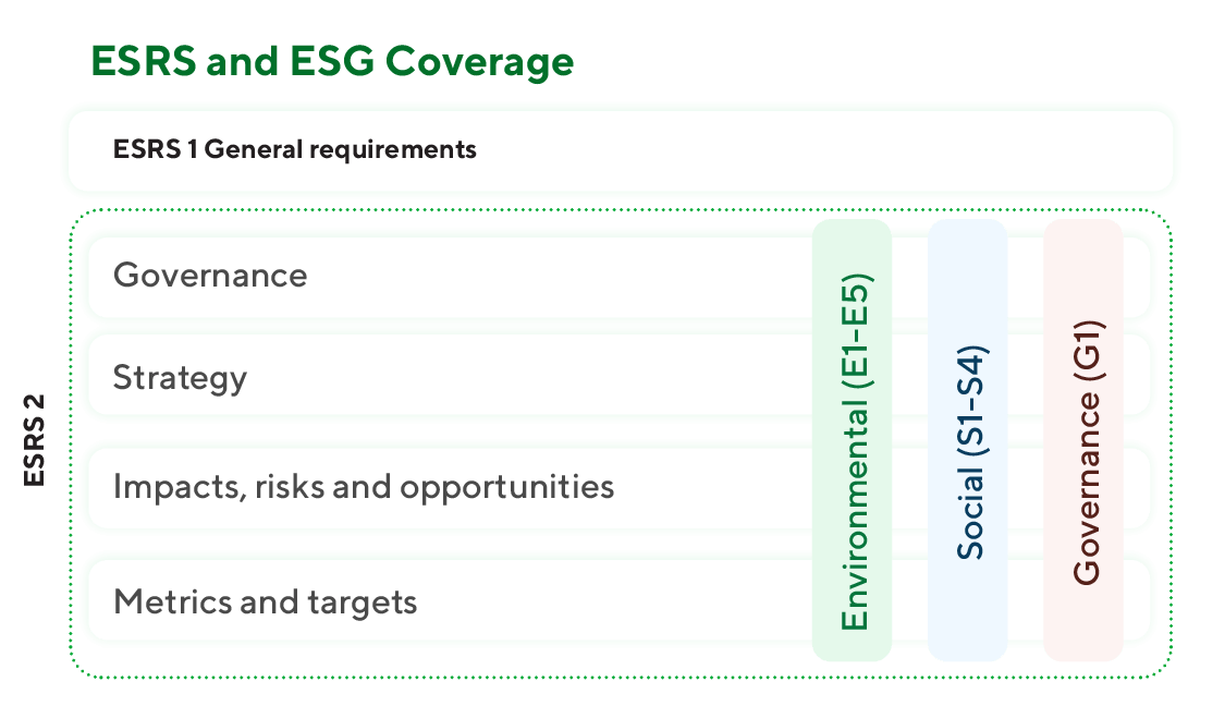 Under the first set of ESRS, only ESRS 2 on general disclosures includes mandatory reporting requirements. Aside from ESRS 1, which does not detail specific content but provides general reporting concepts, the 10 topical standards (E1-E5, S1-S4 and G1) are subject to the double materiality assessment.